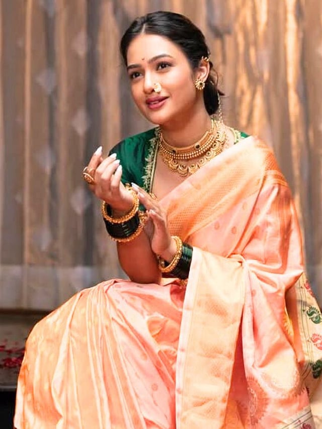 गिरीजाने पिच कलर पैठणीत फोटोशूट केलं आहे