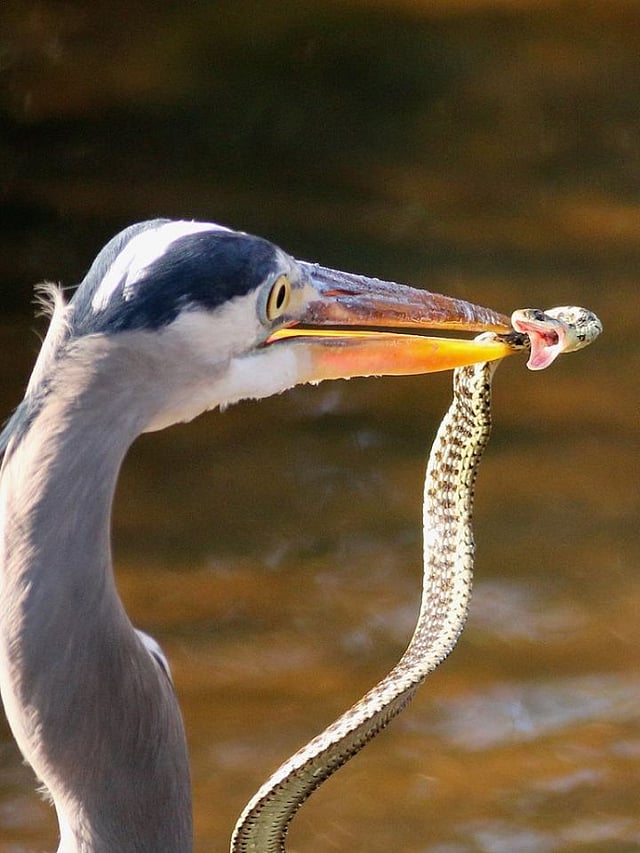 blue heron च्या पोटातील पाचक रस अत्यंत तीव्र स्वरुपाचे असतात. ते सापाची हाडे, कातडी आणि मांस पूर्णपणे पचवू शकतात.