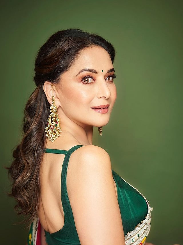 अभिनेत्री माधुरी दीक्षितने व्हाईट- रेड प्रिन्टेंड साडी परिधान केली आहे. .कपाळावर बिंदी, मोठे इअररिग्स, लिपस्टिक आणि मेकअपने तिने लूक पूर्ण केलाय..माधुरीच्या छोट्या पर्सनं सर्वाचे लक्ष वेधून घेतलंय..हा लूक माधुरीने गणेशाच्या उत्सवासाठी केला आहे..संडेची सकाळ स्पेशल; सनसाईन येलो रंग कृतीच्या साडीवर बहरला