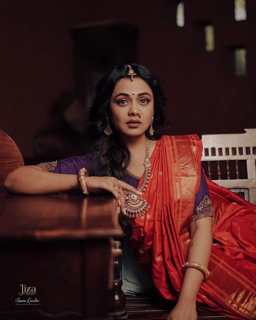 साडीसोबत भरजरी दागिन्यांनी प्रार्थनाचे सौंदर्य खुलून दिसतेय.