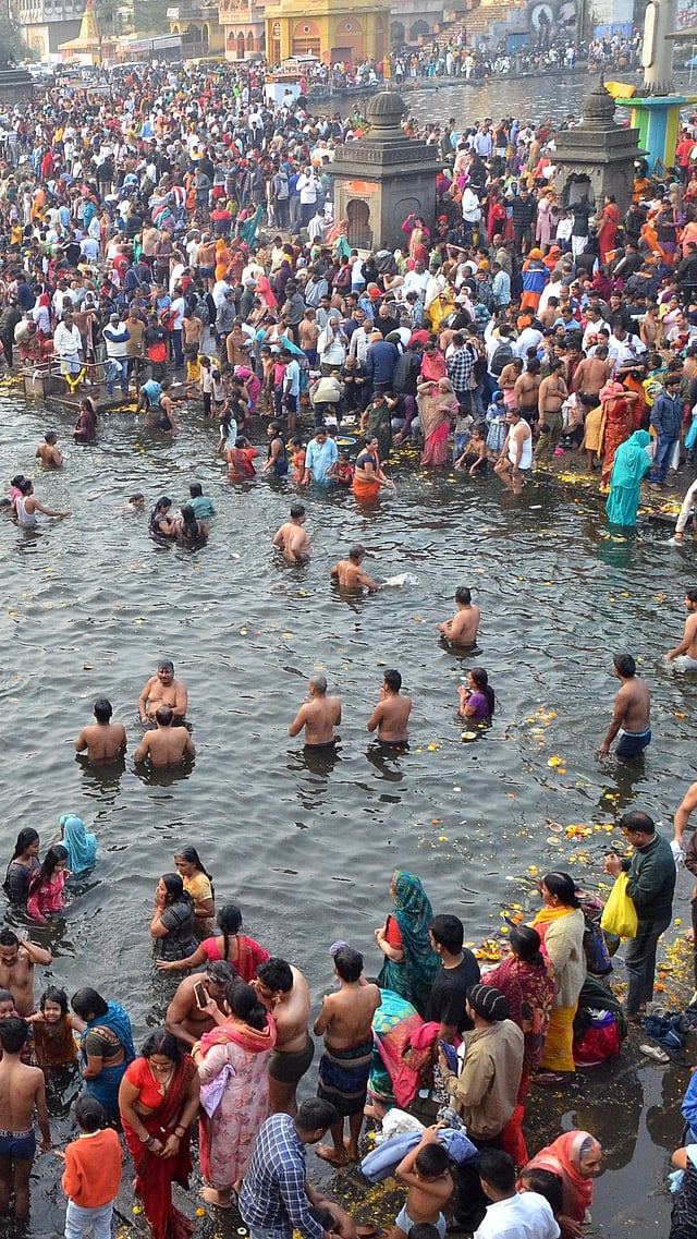 रामकुंडापासून दुतोंड्या मारुतीपर्यंत नदीच्या दोन्ही काठावर भाविकांच्या गर्दीने कुंभपर्वातील स्रानाची आठवण करून दिली.