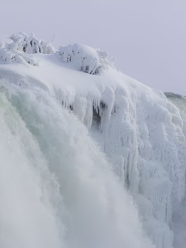हिवाळ्यात नायगरा धबधब्याचा पाण्याचा प्रवाह इतका वेगवान असतो की, तो पूर्णपणे कधीच गोठत नाही. मात्र, थंड वाऱ्यामुळे धबधब्यातील धुक्याचे झाडांवर, रेलिंगवर आणि पायवाटेवर जाड बर्फाच्या थरात रूपांतर होते. यामुळे पाणी वाहत असूनही आजूबाजूचा संपूर्ण परिसर 'स्टॅचू' झाल्यासारखा दिसतो.