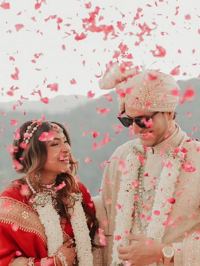 बिग बॉस फेम अभिषेक मल्हानचा मोठा भाऊ निश्चयने लग्नगाठ बांधली.लॉन्गटाईम गर्लफ्रेंड रुचिका राठौरसोबत सात फेरे घेतले .निश्चय युट्यूबर, कंटेंट क्रिएटर आहे तर रुचिका फॅशन कंटेंट बनवते .यावेळी तिने लाल रंगाचा लेहेंगा परिधान केला तर निश्चय शेरवानीमध्ये दिसला .रुचिकाने नाकात नथ, माथापट्टी आणि हेवी नेकलेस घातला होता. .रुचिकाने सात फेरे घेण्यासाठी ऑरेंज कलर सिल्क साडी घातली होती .ग्लॉसी मेकअपमध्ये तिने न्यूड शेड लिपस्टिक, शिमरी आयशॅडो लावलं होतं .बिंदी आणि ओपन हेअर स्टाईलने तिने लूक कम्प्लिट केलं आहे.पिंक बॅकड्रॉप, फ्लोरल साडी अन् प्राजक्ताचा सिंपल साडी-क्लासी लूक