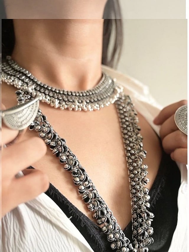 ऑक्सिडाइज्ड ज्वेलरी हे काही विशेष पोशाखांमध्ये कपड्यांवर सर्वात जास्त उठून दिसते