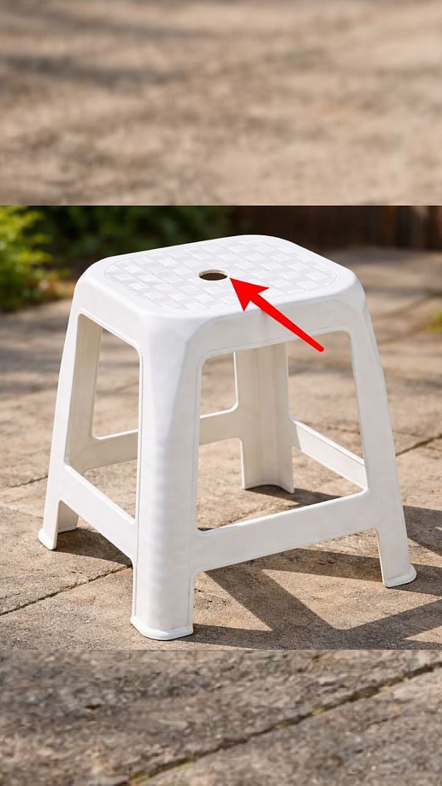 कार्यालयात किंवा हॉटेलमध्ये वापरत असलेल्या प्लॅस्टिकच्या स्टूलमध्ये वरच्या भागात एक गोल छिद्र दिसते.