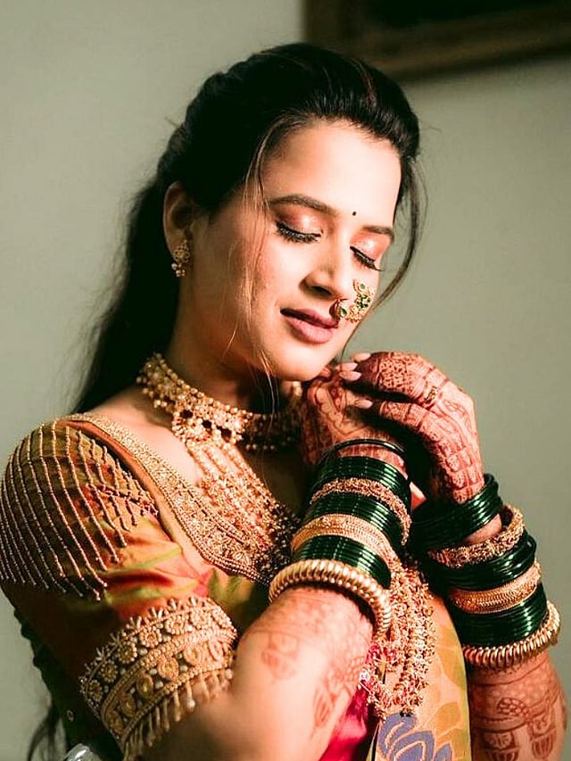 नाकात नथ आणि आकर्षक दागिने तिने घातले आहेत