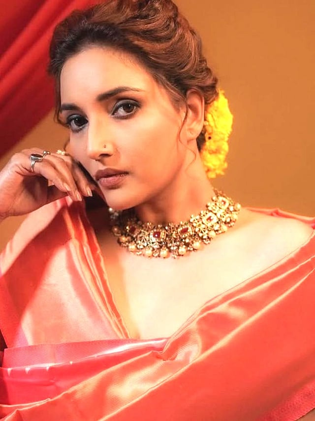 पीच कलर स्टायलिश साडीमध्ये तिने सोशल मीडियावर हे फोटो अपलोड केले आहेत