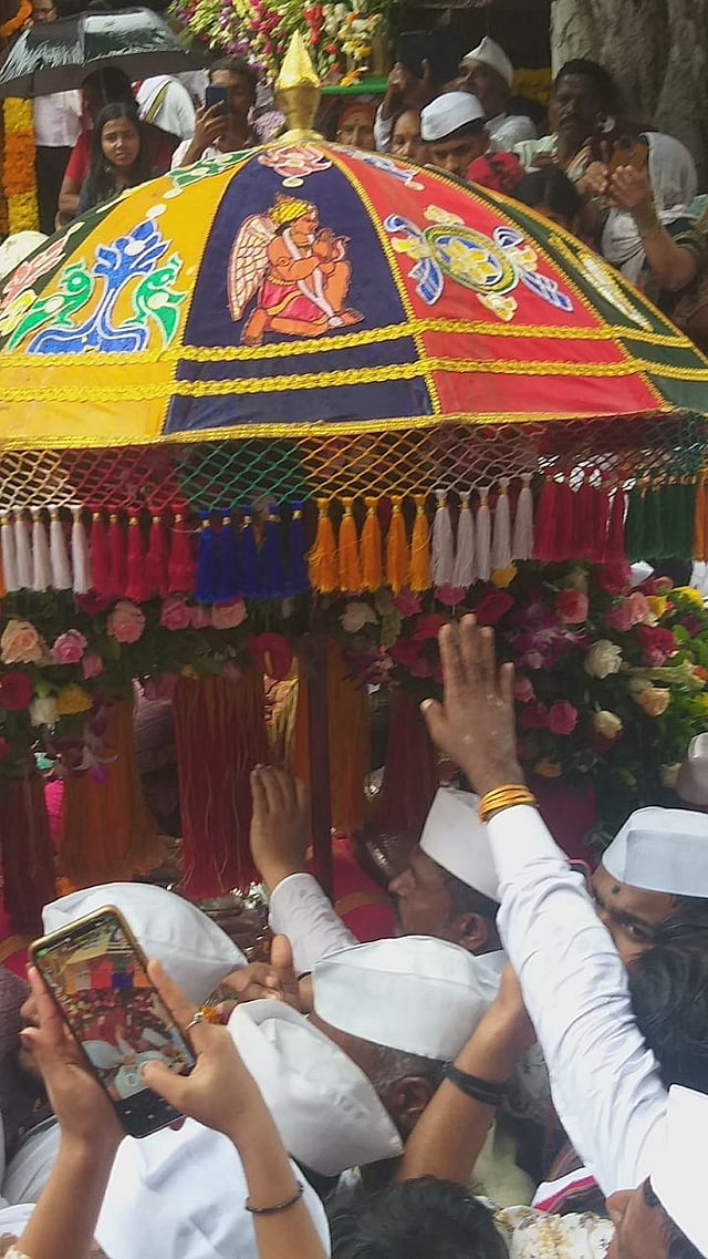 रिमझिम पाऊसात संत तुकाराम महाराजांच्या पालखीचे देहू गावातून प्रस्थान.राज्याचे मुख्यमंत्री देवेंद्र फडणवीस यांच्या हस्ते पालखी प्रस्थान सोहळ्याला प्रारंभ . रिमझिम पाऊस पडत असतानाही वारकऱ्यांचा उत्साह कायम होता. . मुख्यमंत्री देवेंद्र फडणवीस यांनी यावेळी संत तुकाराम महाराज मंदिरात दर्शन घेतले..मुख्यमंत्री देवेंद्र फडणवीस यांनी मंदिर परिसरात फुगडी खेळण्याचा आनंद घेतला. .पालखी सोहळ्याचा दुर्मिळ क्षण आपल्या कॅमेऱ्यात कैद करण्यासाठी अनेकांनी आपले मोबाईल पुढे केले..सामान्य जनतेत मिसळून, त्यांच्या पारंपरिक खेळात सहभागी झाल्यामुळे मुख्यमंत्र्यांच्या साधेपणाचे आणि जनसंपर्काचे दर्शन घडले. .पालखी सोहळ्याचा क्षण भाविकांसाठी आणि प्रसारमाध्यमांसाठी एक अविस्मरणीय अनुभव ठरला. .येथे क्लिक करा.