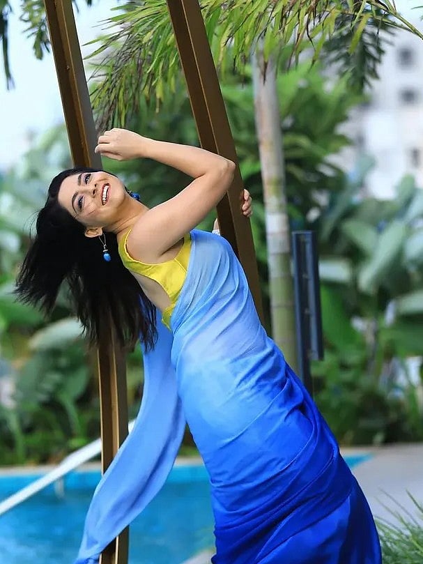 मराठी अभिनेत्री सोनाली कुलकर्णीला कोण ओळखत नाही.. सोनालीची खास ओळख 'अप्सरा' या नावाने आहे..मराठी चित्रपटांसोबत तिने अनेक मालिकाही गाजवल्या आहेत..यलो स्लिव्हलेस ब्लाऊजवर सोनालीने आकाशी-निळ्या रंगाच्या साडीतील फोटो शेअर केलेत..सोनालीने एका स्विमिंग पुलाच्या जवळ उभारून हे फोटोशूट केलं आहे..सोनालीच्या मागे स्विमिंग पुलासह हिरवीगार झाडी खुपच सुंदर दिसतेय..'क्या है प्यार बताओ ना, दिल का चैन या दिल का रोग?' जब्याची वाट पाहत शालू घनदाट जंगलात