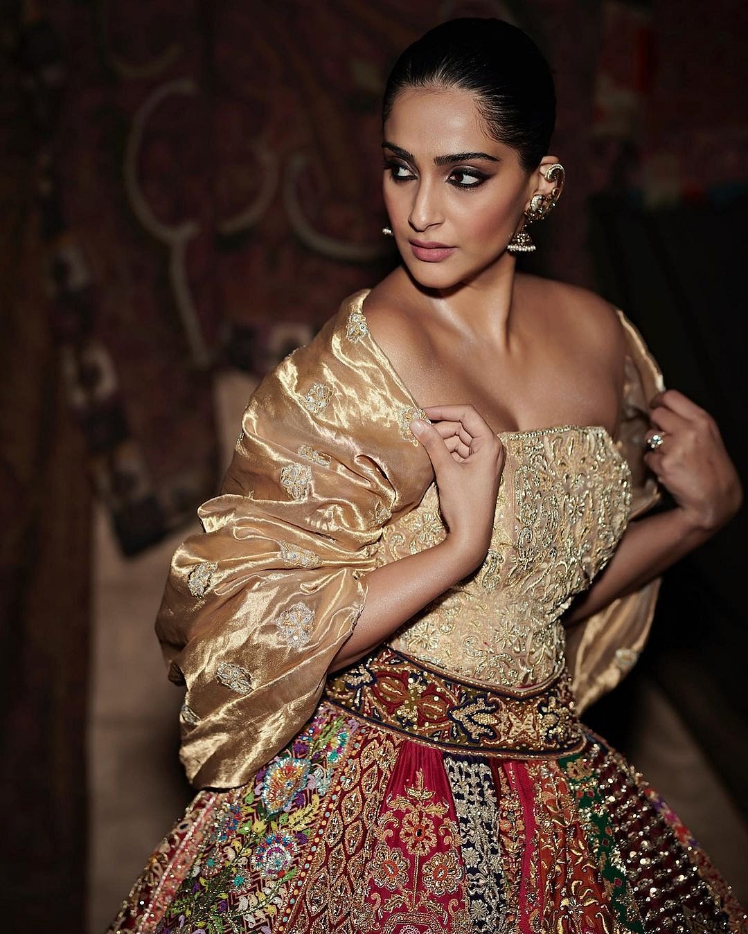 सोनम डायरच्या शेल्फ् रुप रंगिबेरंगी वेशभूषेत दिसत आहे