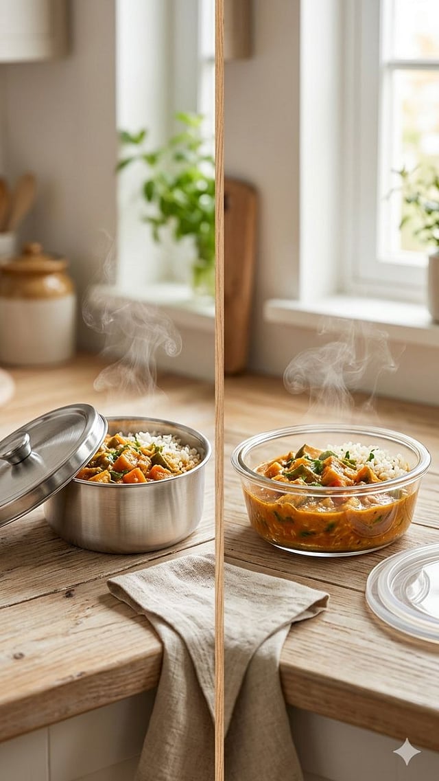 जर तुम्हाला फक्त साठवणूक करायची असेल तर स्टील उत्तम आहे, पण जर तेच अन्न पुन्हा गरम करायचे असेल तर काच हा सर्वात सोयीस्कर पर्याय ठरतो.
