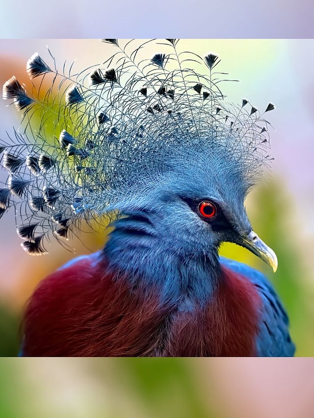 निळसर पंख, राजेशाही चाल आणि डोक्यावर मुकुटासारखी पिसांची रचना—व्हिक्टोरिया क्राउन पिजन (Victoria Crowned Pigeon) पाहताच लक्ष वेधून घेतो